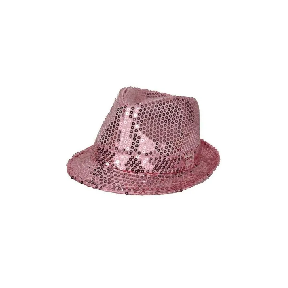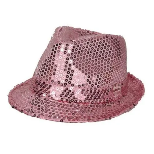 Chapeau funk en paillettes de couleur rose pour adultes