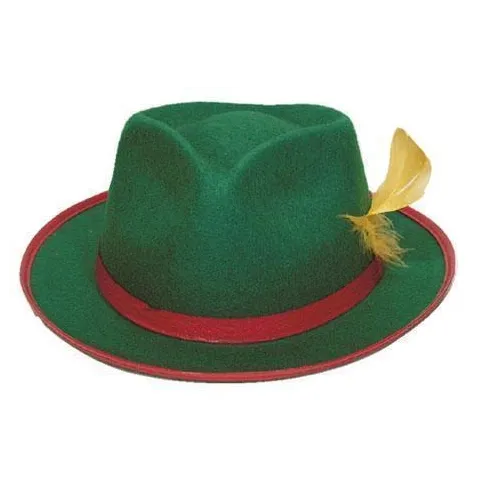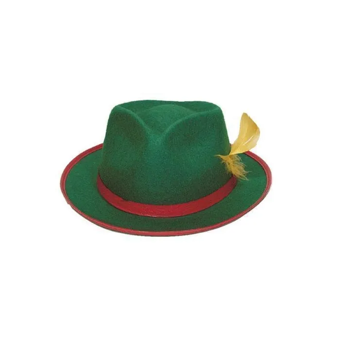 Chapeau de tirolienne en feutrine de couleur verte avec tresses jaunes