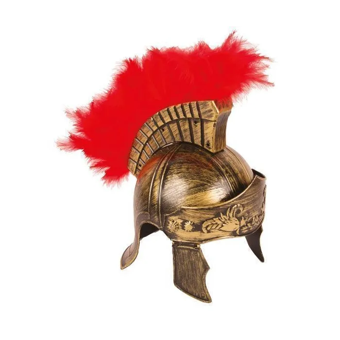 Casque de romain en PVC avec plumes rouges