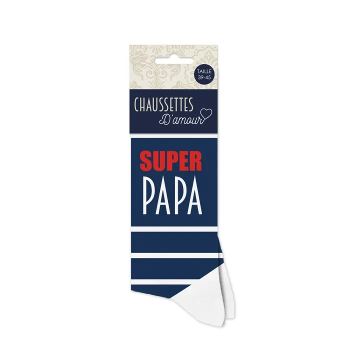 Confort garanti avec ces chaussettes Super Papa ! Elles disposent d'une taille unique allant de 39 à 45. Convient particulièrement pour les hommes.