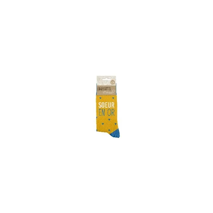 Cet accessoire mode & beauté au design coloré reprend la mention affective "Sœur en or". Ces chaussettes sont faites pour montrer à votre soeur combien vous l'aimez !