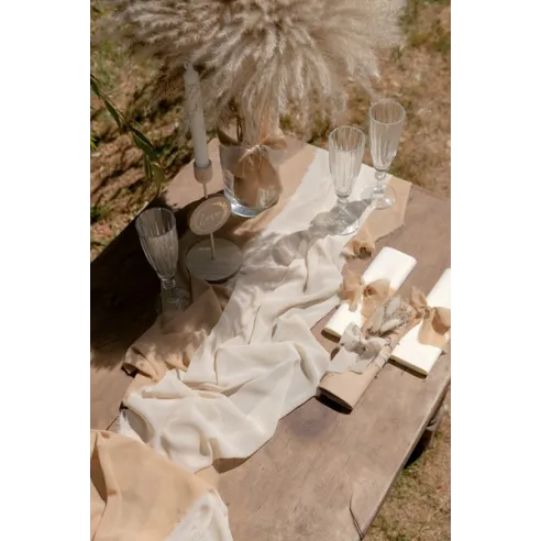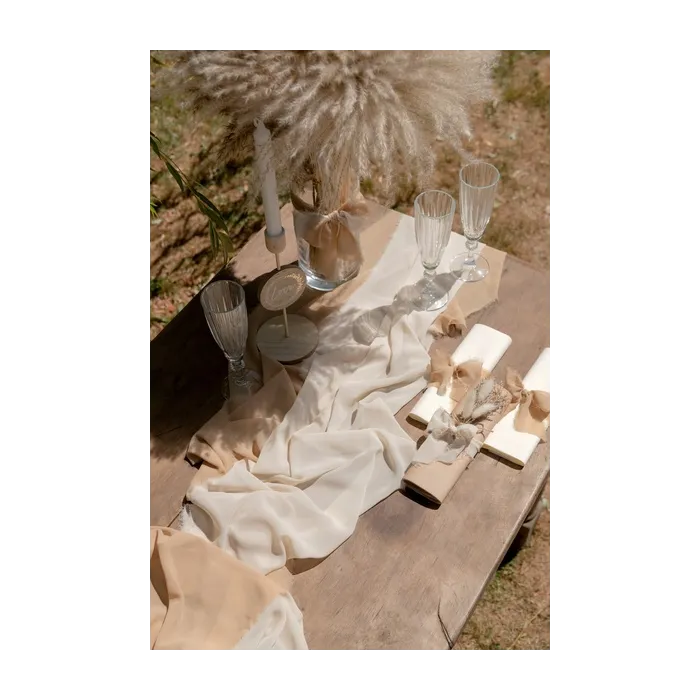Chemin de table en crêpe de couleur rose poudré Dimensions: 3m x 35cm