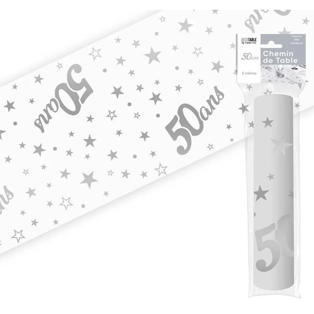 Chemin de table 50 ans Joyeux Anniversaire argenté 5 mètres