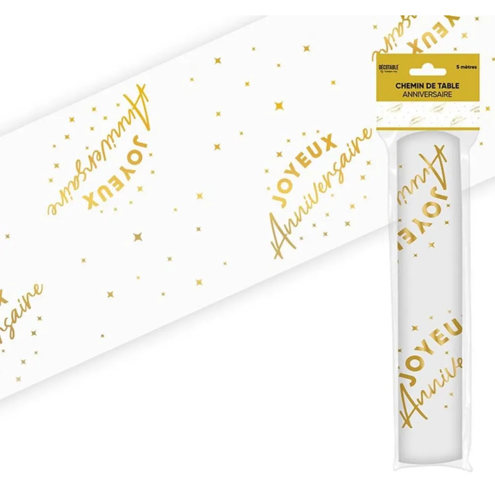 Chemin de table Joyeux Anniversaire doré 5 mètres