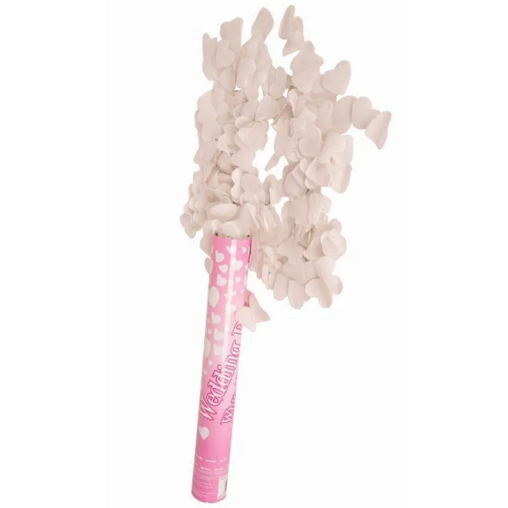 Ajoutez une explosion de joie et de romantisme à vos célébrations avec ce canon à confettis coeurs blancs, parfait pour montrer votre amour à votre dulcinée ou à faire péter lors d'un mariage ou pour la saint Valentin.