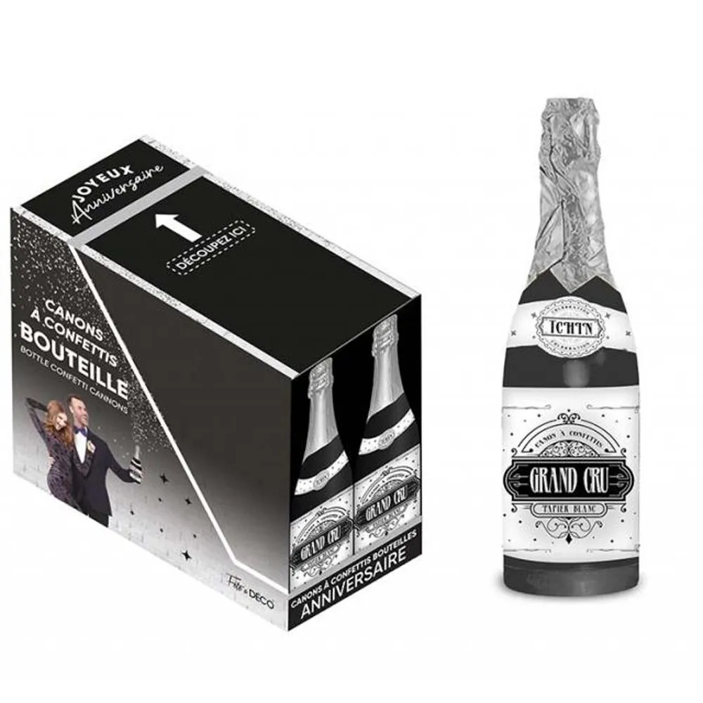 Pour toutes vos occasions festives et événements marquants faites péter le champagne, grâce à nos canons à confettis colorés en forme de bouteille, vendu à l'unité.