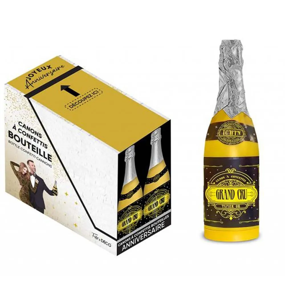 Pour toutes vos occasions festives et événements marquants faites péter le champagne, grâce à nos canons à confettis colorés en forme de bouteille, vendu à l'unité.