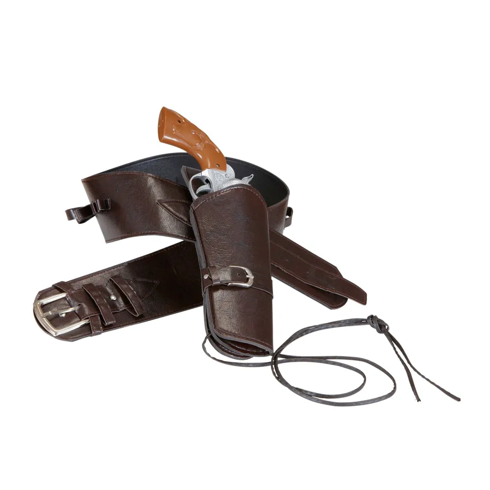 Chevauchez votre monture pour parcourir les plaines du far-west, avec ce holster cow-boy version luxe incluant la ceinture. Holster simple pouvant contenir un révolver avec un aspect simili cuir pour un effet authentique.