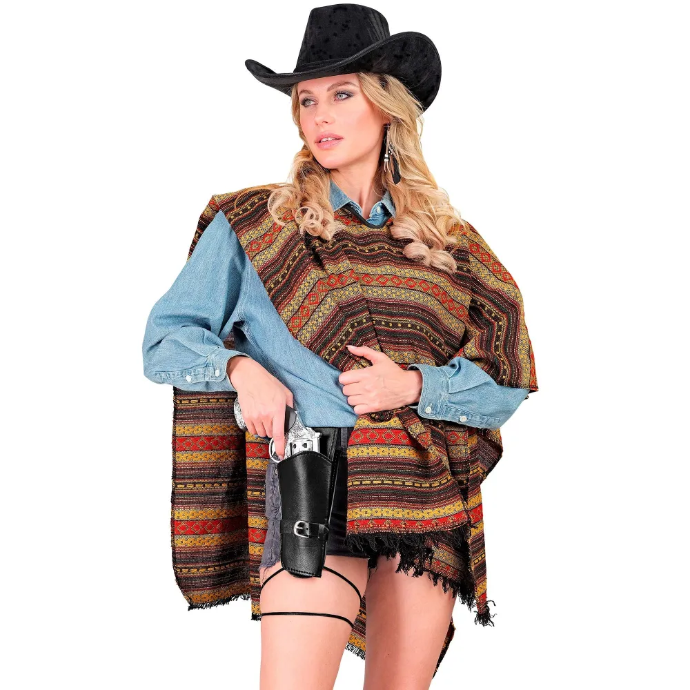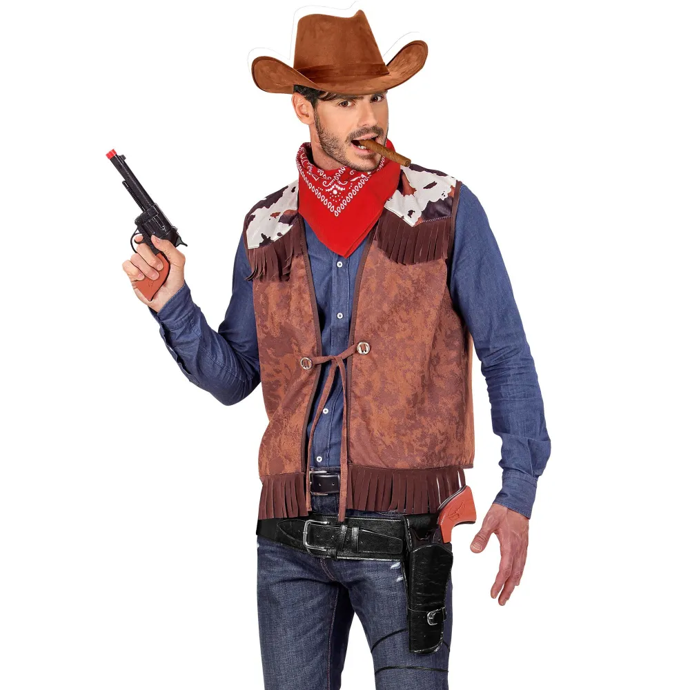 Chevauchez votre monture pour parcourir les plaines du far-west, avec ce holster cow-boy version luxe incluant la ceinture. Holster simple pouvant contenir un révolver avec un aspect simili cuir pour un effet authentique.