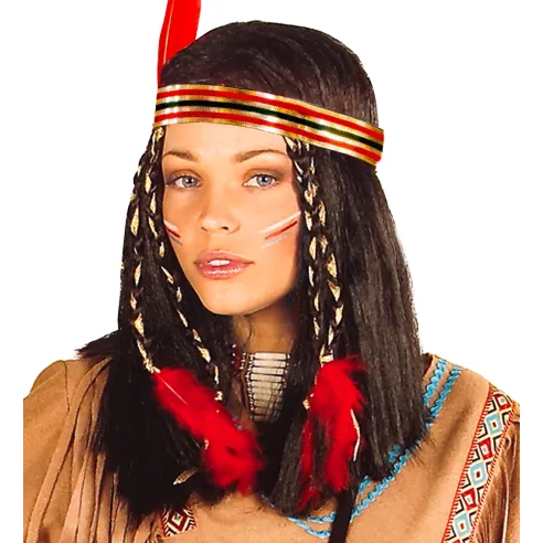 Perruque indienne pour femme avec bandeau et plume