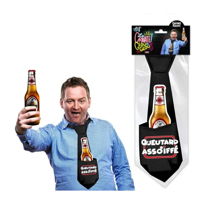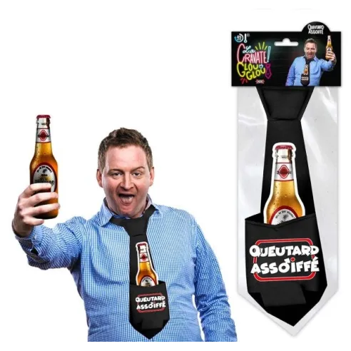 La cravate GLOUGLOU mesure 73 cm et permet de garder sur vous et au frais votre boisson pendant 45 minutes tout en vous libérant les mains.. Disponible en noir, en rouge ou en rose, déclinée à l'âge, pour l'anniversaire ou les occasions spéciales, la cravate Glouglou vous amusera autant qu'elle amusera vos amis. Elle est aussi un cadeau idéale.