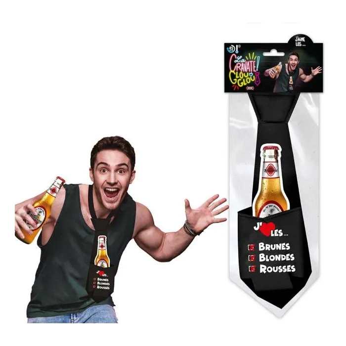La cravate GLOUGLOU mesure 73 cm et permet de garder sur vous et au frais votre boisson pendant 45 minutes tout en vous libérant les mains.. Disponible en noir, en rouge ou en rose, déclinée à l'âge, pour l'anniversaire ou les occasions spéciales, la cravate Glouglou vous amusera autant qu'elle amusera vos amis. Elle est aussi un cadeau idéale.