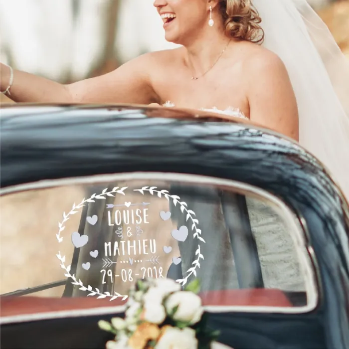 Décorez votre voiture de mariés avec style grâce au sticker pour voiture mariage.