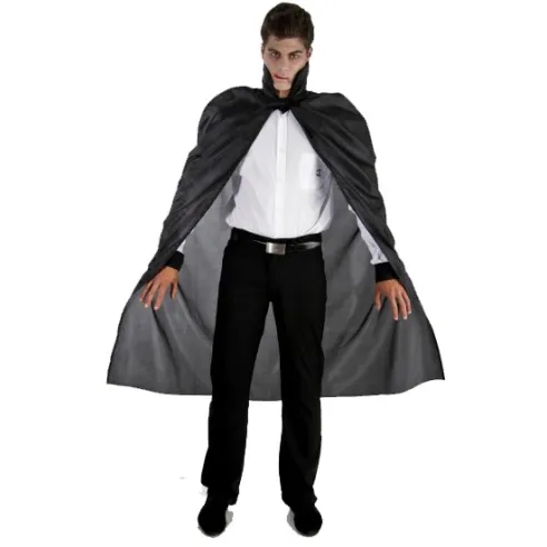 Indispensable pour compléter un costume de vampire, la cape taffetas mesure 127 centimètres de longueur. Idéale pour donner du volume à la tenue, elle est agrémentée d’un col haut.