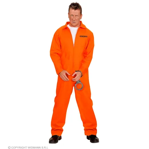 Le prisonnier vient tout juste de s'échapper de son cachot. Attention, c'est un dangereux criminel ! De couleur orange, son uniforme est visible de loin. Il est agrémenté d'un numéro de matricule placé en haut à gauche. Le déguisement de prisonnier se complète simplement d'une chaîne imitation métal et de chaussures noires.