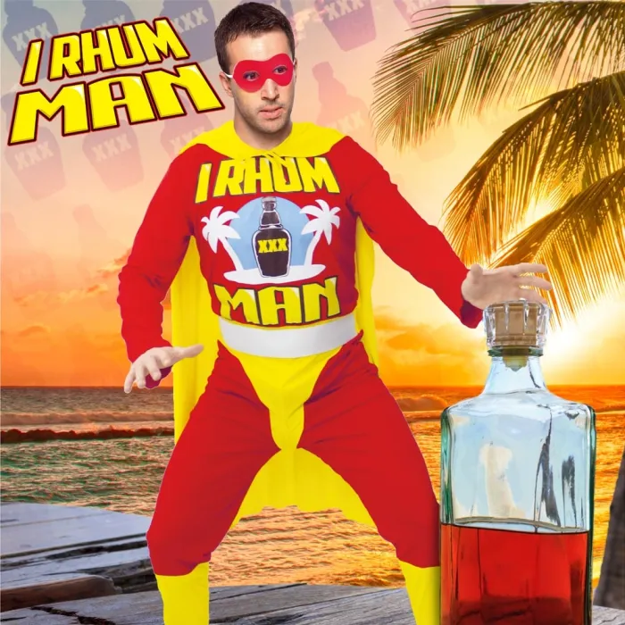 Déguisement COSTUME I RHUM MAN. Vous souhaitez être la star d'une soirée costumée humoristique ? Notre costume "I Rhum Man" est la solution !