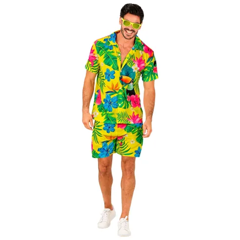 Rendez-vous au bord de la piscine avec ce déguisement composé d'une chemise et son short assorti. Un ensemble coloré avec des motifs rappelant les îles qui fera parfait pour vos soirées d'été.