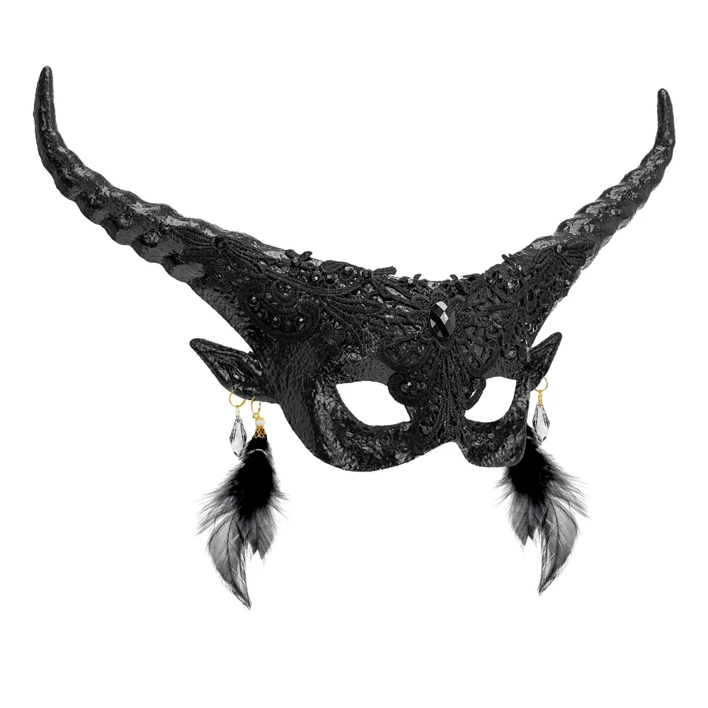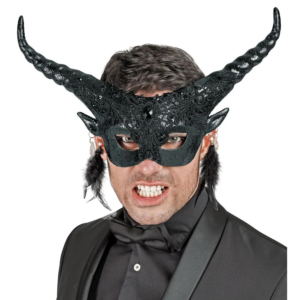 Affirmez votre côté sombre et théâtral avec ce masque de diable noir et boucles d'oreilles avec petites plumes assorties. Un masque de déguisement version luxe qui transforme immédiatement votre tenue. Conçu pour les soirées Halloween ou les représentations théâtrales il est parfait pour interpréter une diablesse maléfique.