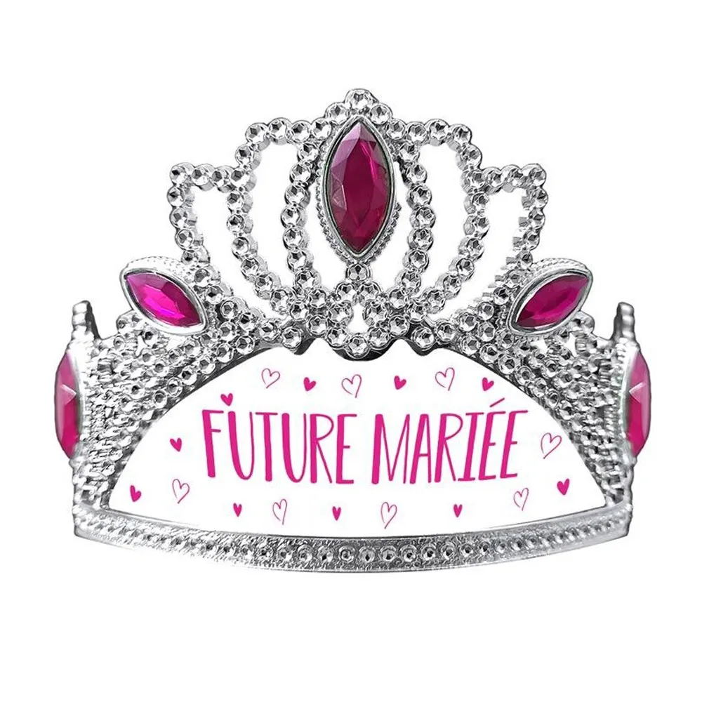 Diadème avec petits strass argent et diamants roses avec l'inscription "Future Mariée". Pour organiser votre enterrement de vie de jeune fille rendez-vous chez Festimania.