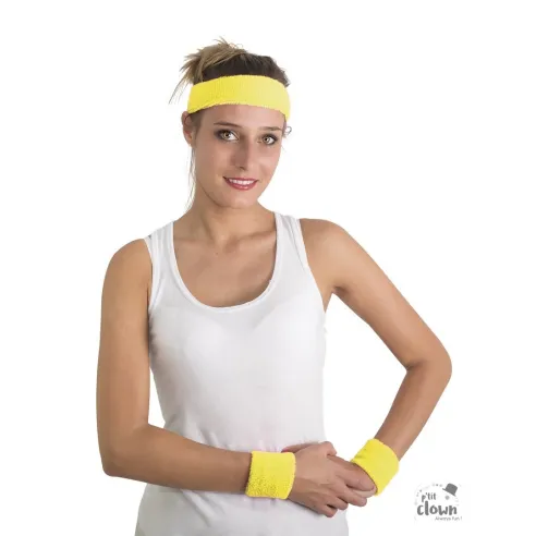 Set de Bandeau et poignets éponge jaune fluo