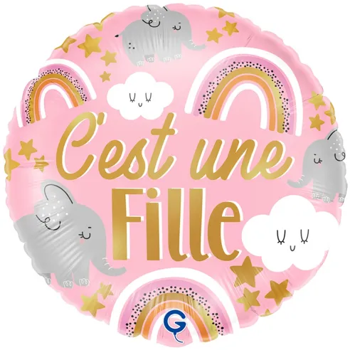 Ballon aluminium rond C'est Une Fille rose pour baby shower, gonflable à l'hélium pour une décoration gender reveal originale.