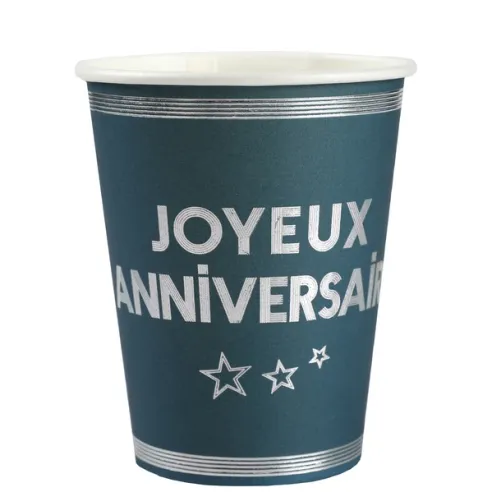 Gobelets Joyeux Anniversaire métallisé - KraftMatière: Carton Dimensions: ø 7.8 x 9.7 cm Quantité: 10