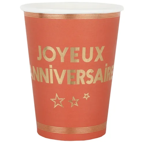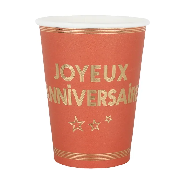 Gobelets Joyeux Anniversaire Matière: Carton Dimensions: ø 7 x 8.5 cm Quantité: 6