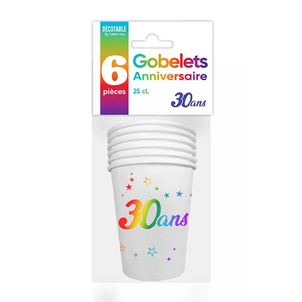 6 gobelets 30 ans multicolore