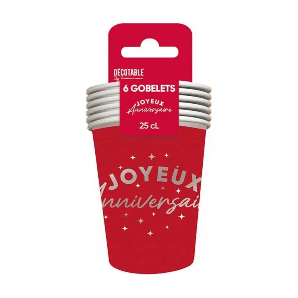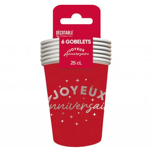 6 gobelets Joyeux Anniversaire couleur