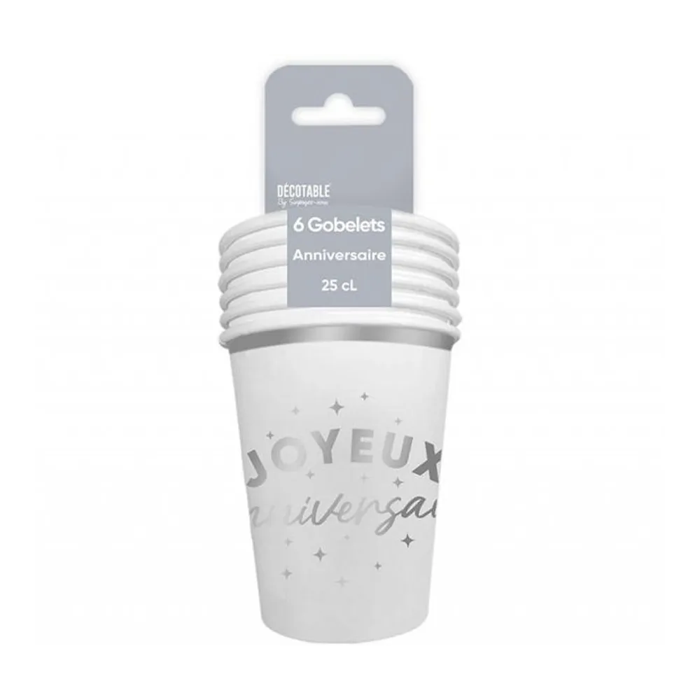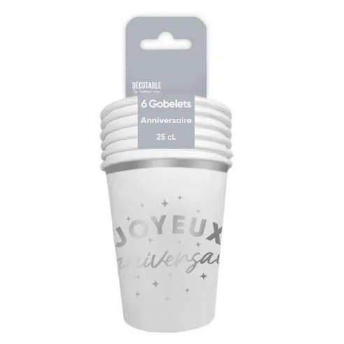 Ajoutez une touche festive à votre soirée d’anniversaire avec ces 6 gobelets Joyeux Anniversaire couleur cartonnées, d'une contenant de 25 cl. Idéal pour trinquer entre amis ou pour un goûter d'enfant.