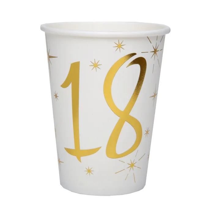 Gobelets sur le thème happy birthday ballonsMatière: carton Dimension: Diamètre 7.8 cm/Hauteur 9.7cm/27cl Quantité: 10