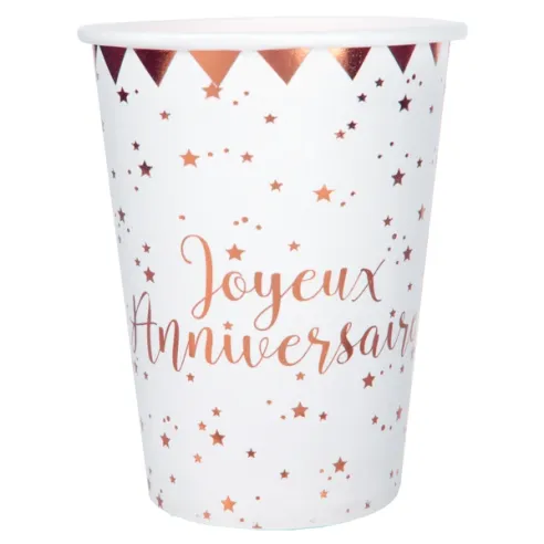 Gobelets Joyeux Anniversaire métallisé - Rose gold
