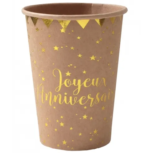 Gobelets Joyeux Anniversaire métallisé - Kraft