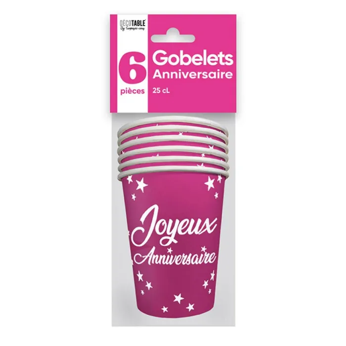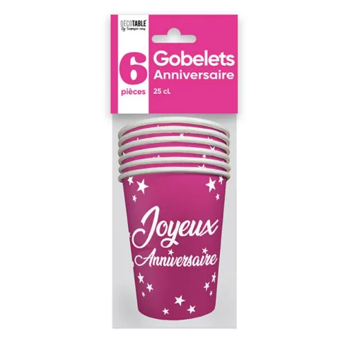 Gobelets Joyeux Anniversaire métallisé - BleuMatière: Carton Dimensions: ø 7.8 x 9.7 cm Quantité: 10