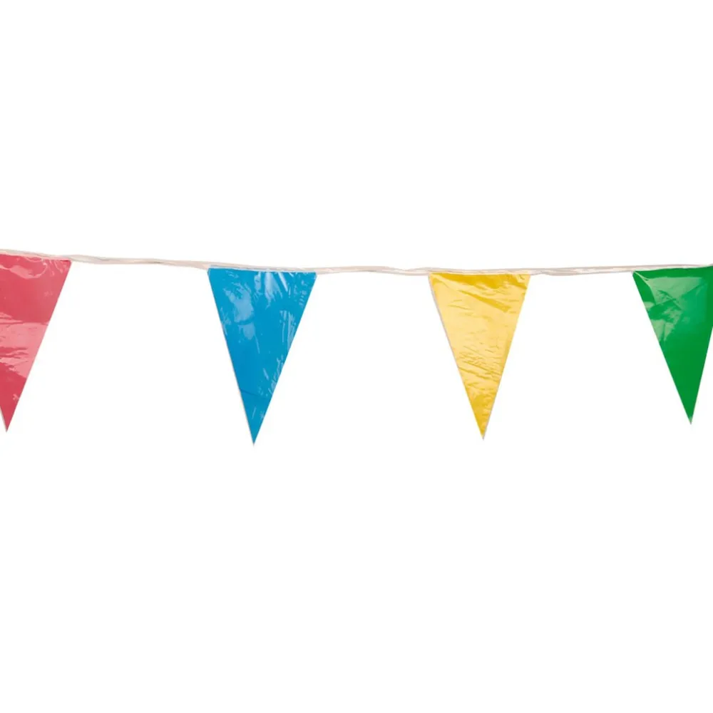 Pour une ambiance festive et colorée en quelques instants attachez cette guirlande fanions multicolores de 10 m. Composée de fanions triangulaires colorés sur sa longueur, cette guirlande apporte une touche de gaieté, que ce soit dans une salle, un jardin, une terrasse ou un stand de fête.