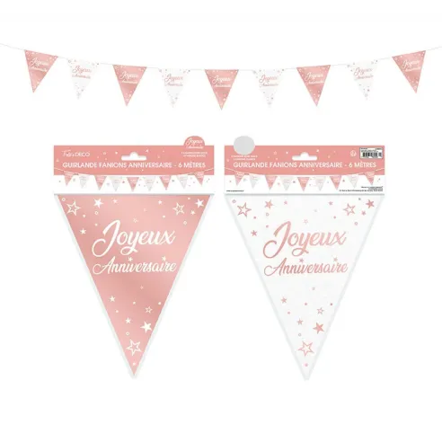 A la recherche d'une décoration festive et remarquable pour un anniversaire ? Cette guirlande fanion est faite pour vous. En papier épais, elle mesure 6 mètres de long. Estampillée "Joyeux anniversaire" avec des étoiles étincellantes, elle prendra une place remarquée aussi bien sur un mur que sur un buffet.