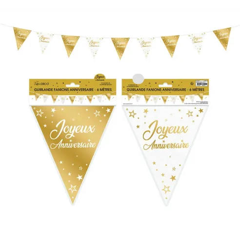 A la recherche d'une décoration festive et remarquable pour un anniversaire ? Cette guirlande fanion est faite pour vous. En papier épais, elle mesure 6 mètres de long. Estampillée "Joyeux anniversaire" avec des étoiles étincellantes, elle prendra une place remarquée aussi bien sur un mur que sur un buffet.