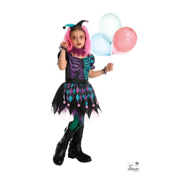 Déguisement halloween de clown squelette pour enfant comprenant: