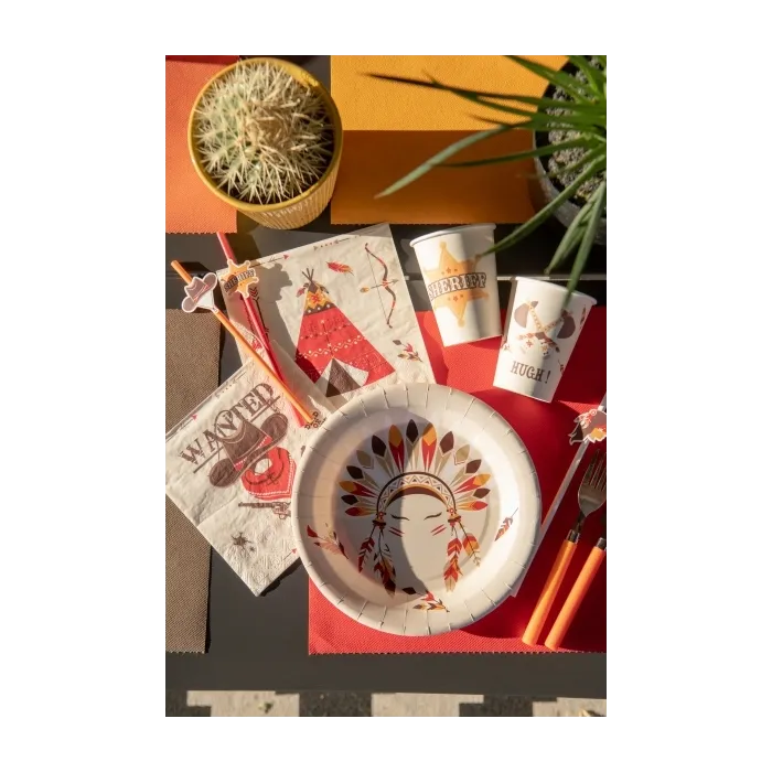 Serviettes sur le thème des indiens et des cowboysMatière: papier 3 plis Dimension: 16.5x16.5cm Quantité: 20