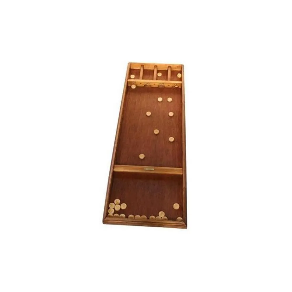 Lancer les palets individuellement par un mouvement du bras et du poignet dans les 4 compartiments. Les palets qui ne rentrent pas directement dans les compartiments peuvent être poussés par les palets suivants, selon le principe du billard.