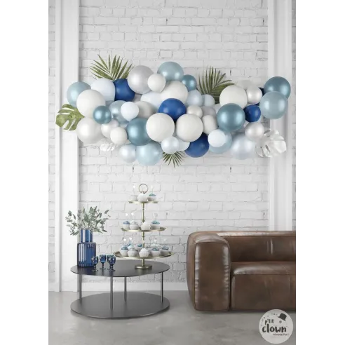 KIT ARCHE A BALLONS GENDER REVEAL. Donnez du volume à votre baby shower avec ce kit arche à ballons tricolore pour un rendu unique !Accrochée en présentation ou suspendue au centre de la pièce, cette arche baby shower impressionnera vos invités dès leur arrivée.Composée de quarante ballons de trois modèles différents, cette arche est facile à réaliser et...