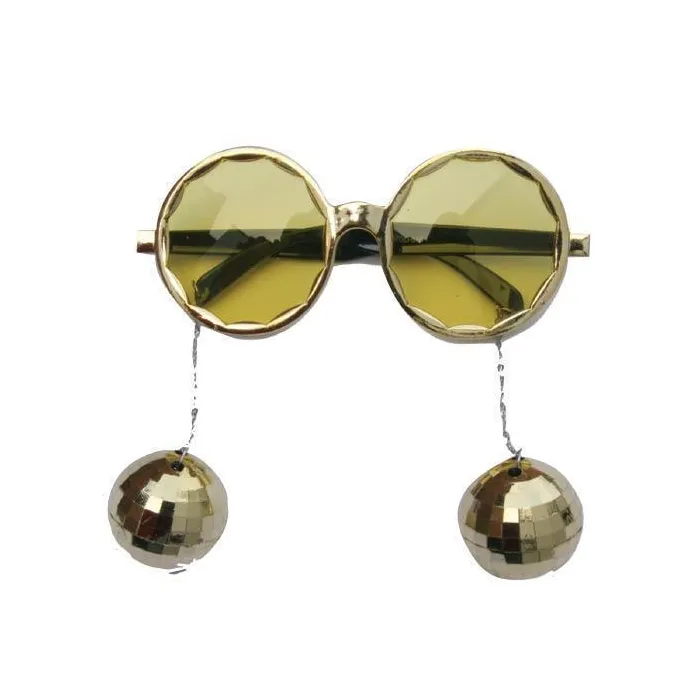 Lunettes fantaisie pour adultes avec deux boules à facette qui font office de boucles d'oreilles