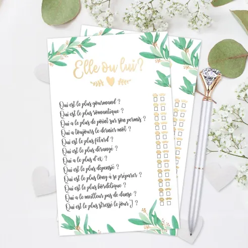 Idéal pour passer un moment inoubliable, chaque carte comprend 12 questions sur les futurs mariés. Une fois la première question lancée, laissez les invités y répondre et observez la magie opérer.