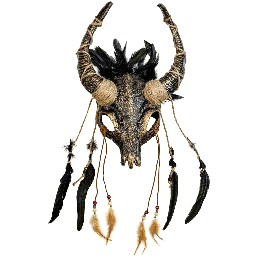 Plongez dans une ambiance vaudou avec ce masque chaman crâne de taureau avec plumes. Un masque original et unique dans son style, qui apporte une dimension puissante et énigmatique à votre déguisement Halloween.
