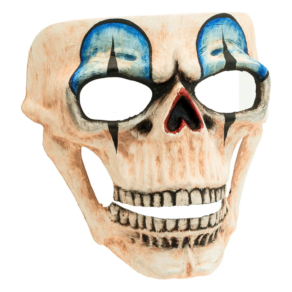 Masque en forme de crâne de clown pour un costume original à Halloween ou une pièce de théâtre. La Commedia dell’arte est un style théâtral du 16ème siècle d'origine italienne, où les acteurs utilisent des masques expressifs pour jouer des rôles plutôt dramatiques.
