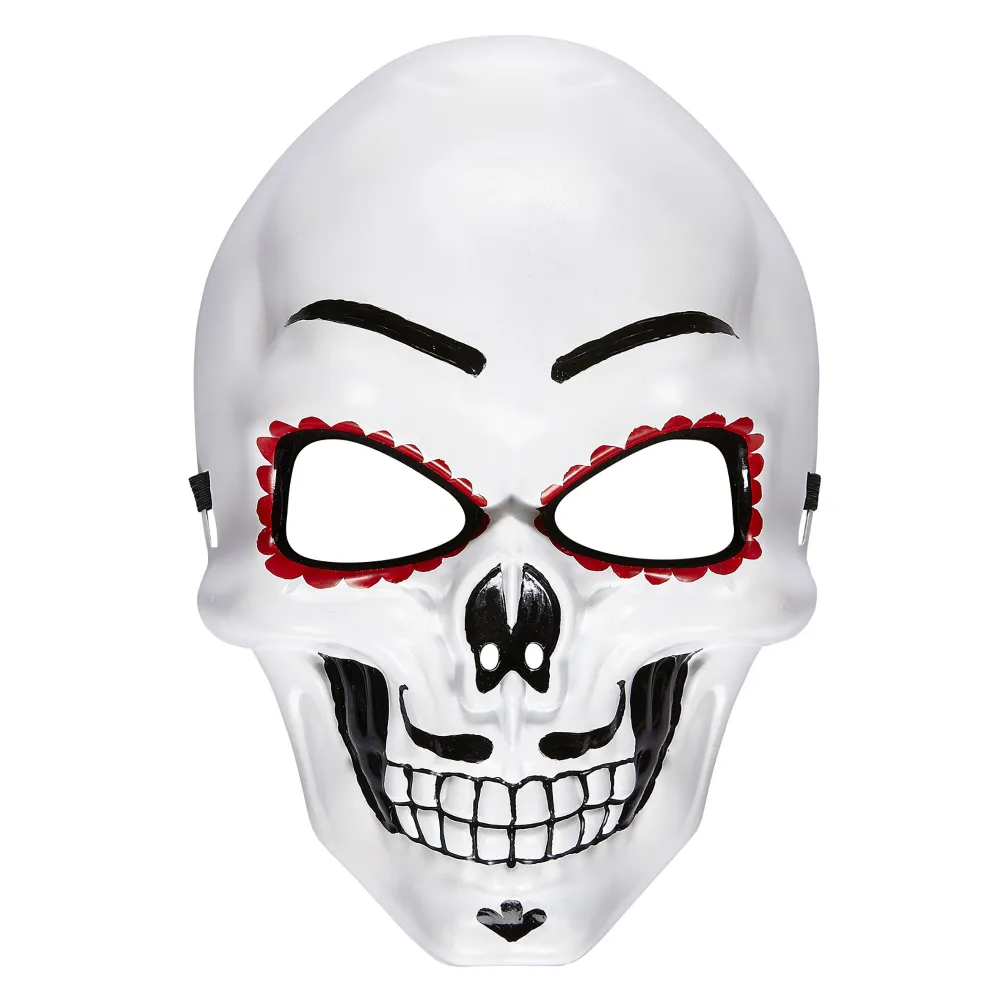 Ce masque tête de mort mexicaine est inspiré des célèbres calaveras. Utilisés traditionnellement lors de la fête du Día de los Muertos pour célébrer la mémoire des défunts avec joie, ces motifs de crâne sont devenus incontournables lors des soirées Halloween.