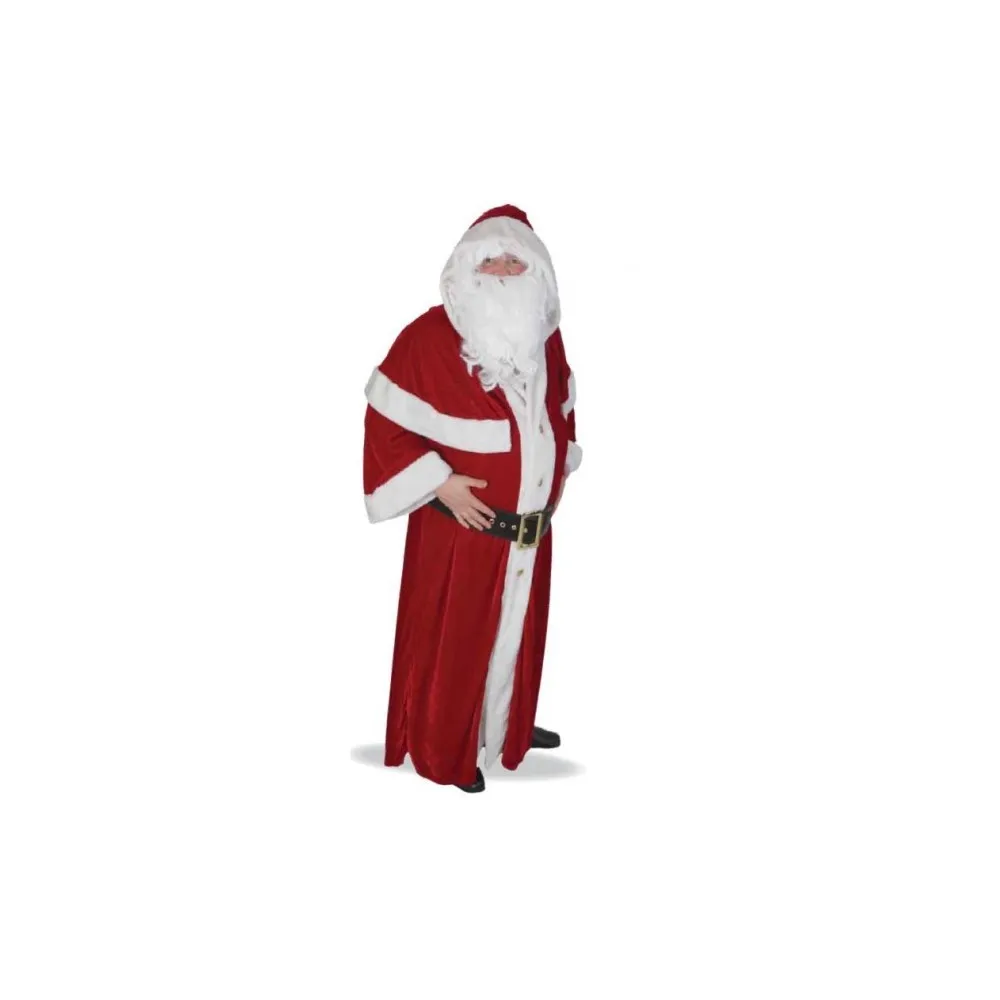 Le deguisement Pere Noel Européen luxe se compose de trois éléments. A savoir, le manteau à capuche, la capeline rouge et blanche et la ceinture assortie.