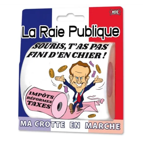 La Raie publique Macrotte est en marche, et vous n'avez pas fini d'en chier ! Au moins, vous pourrez toujours vous essuyer avec ce papier toilette humoristique.