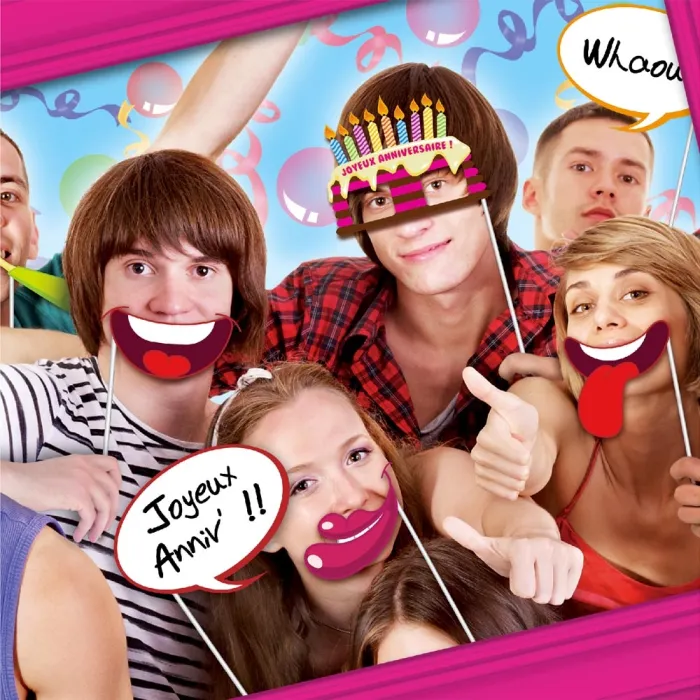 Ce pack d’accessoires pour photobooth anniversaire vous permettra de réaliser des séances photos inoubliables lors de votre fête d’anniversaire.