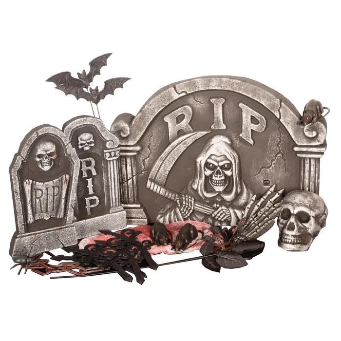 Pierre tombale en polystyrène hauteur 93cm avec bougies qui s'allument (piles non fournies)